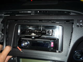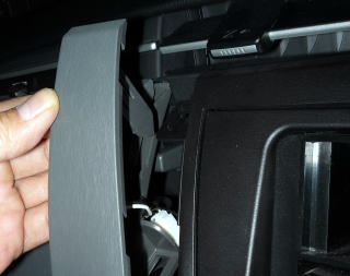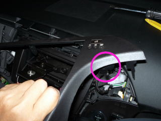 | コネクタが2本繋がっているので無理に引きあげない事。 | この2箇所のカネクタを外します。 | センター全体のパネルを外します。(外さなくても作業は何とか可能です) |