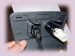強力な接着剤で コンセント口に固定・・。 |